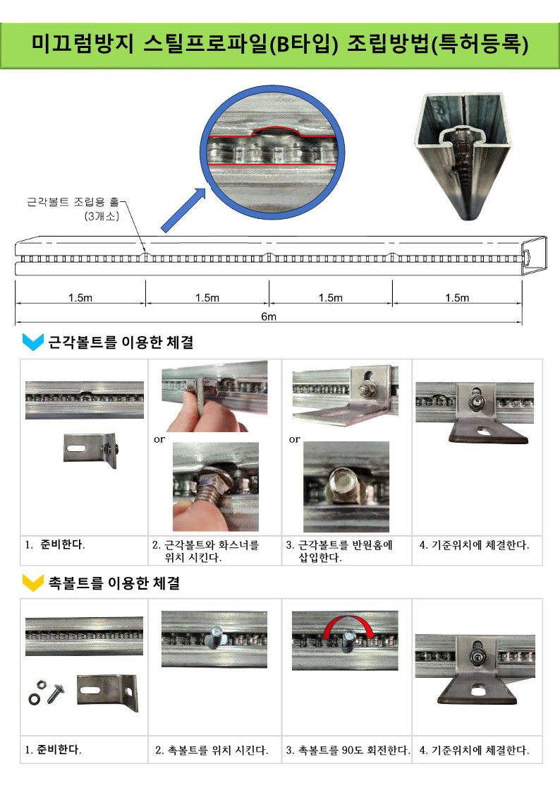 수직재 미끄럼방지 세레이션 전용볼트 및 표준 근각볼트 선택사용